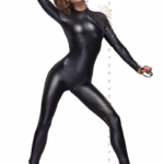 Langarm Wetlook Lackoptik PVC Overall Catsuit mit langem 3-Wege Zipper F188 – Lack-Optik Catsuit