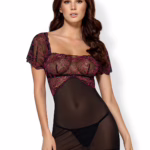 Verführerisches Chemise CR4147 in Schwarz von Chilirose aus transparenter Spitze und Tüll mit außergewöhnlichem Rückendetail und passendem String – Chemise CR4147