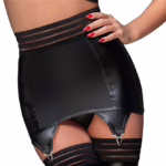 Weißes Straps-Set aus festem Lederimitat mit Satinbandschnürung, Metallringen, verstellbaren Strumpfhaltern und passendem T-String verführerisches Dessous-Design