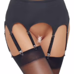 Axami schwarzer Strapsgürtel/Halter in schwarzer Transparenz mit Spitzendetails, Spitzen-Verzierung, Hüftbetonte Elastische Riemchen