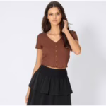 Damen-T-Shirt mit Knopfleiste