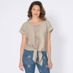 Damen-T-Shirt mit Spitzenapplikation