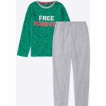 Dieser Kinder-Jungen-Schlafanzug von Kids bietet idealen Komfort für erholsame Nächte. Das Oberteil überzeugt durch sein Ringel-Design mit einem Cool Boys-Druck, während die unifarbene Hose mit Bündchen für einen angenehmen Sitz sorgt. Hergestellt aus reiner Baumwolle, ist er besonders hautfreundlich und bequem. Modischer Schlafanzug mit Ringelshirt Unifarbene Hose mit Bündchen Oberteil aus reiner Baumwolle Perfekt für Nachtwäsche & Homewear
