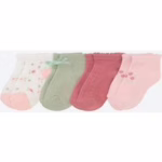 Diese Baby-Sneaker-Socken im 4er-Pack von Liegelind sind niedliche Babysöckchen mit Mäusezähnchen und Schleifchen. Sie bieten ein angenehmes Tragegefühl durch den hohen Baumwollanteil und sind ideal für kleine Mädchenfüße. Niedliches Design mit Schleifchen Mäusezähnchen für besonderen Charme Hoher Baumwollanteil OEKO-TEX® Standard 100 zertifiziert Weiche, flache Zehennaht für Komfort