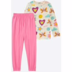 Dieser Kinder-Mädchen-Schlafanzug von Kids kombiniert komfortables Design mit verspieltem Druck. Das aus reiner Baumwolle gefertigte Set besteht aus einem gemütlichen Shirt und einer passenden Hose, die sich ideal für eine erholsame Nacht eignen. Shirt und Hose mit Druck Reine Baumwolle für besten Komfort Ideal für erholsamen Schlaf