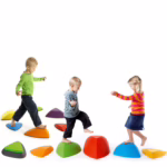 Die Kombination der bunten Flusssteine mit den Hügeln lassen Kinderherzen höher schlagen – wobei der 'bewegte' Flussstein (Bouncing River Stone) der Clou ist.Dieses Set lässt selbst Bewegungsmuffeln keine Chance unmotiviert zu bleiben – hier heißt es jetzt und auf der  Stelle Spielen, Hüpfen und Balancieren. Sorgt sowohl drinnen als auch draußen für endlosen Spielspaß!Stapelbar und platzsparend zu verstauenSicherheit durch rutschfeste GummikantenFörderung der Balance, Motorik und KonzentrationGeeignet für Kinder ab 2 JahrenHöchstbelastung: 100 kgBeschreibung zu den Flusssteinen:Von Stein zu Stein hüpfen ohne den Boden zu berühren! Die Lage der Steine kann beliebig verändert werden, um unterschiedliche Anforderungen zu stellen. Fluss-Steine verbessern den Gleichgewichtssinn, die Körperwahrnehmung, die Bewegungskoordination, die Motorik und bringen zusätzlich richtig viel Spaß.Die Formgebu…