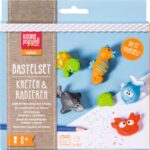 Witziges Kneten & Radieren Bastelset „“Be Happy““ zur Herstellung von 5 lustigen Radiergummis. In dem Set ist alles enthalten, was benötigt wird. Sie erhalten 4 Modelliermassen à 20 g, 4 Modelliermassen à 5 g und 2 Modellierstäbe. Dieses Modellierset bringt gleich doppelte Freude. Es macht nicht nur riesigen Spaß diese Gesichter zu modellieren, sondern sie können auch als Radierer benutzt werden. Die Modelliermasse lässt sich kinderleicht verarbeiten und mit der ausführlichen Step by Step Anleitung ist das Nachformen der lustigen Gesichter ganz einfach. Die Modellierstäbe helfen dabei, den Emojis den passenden Gesichtsausdruck zu geben oder mit Highlights wie Sonnenbrille oder Herzchenaugen zu verzieren. Die Gesichter können auch auf einen Bunt- oder Bleistift gesetzt werden. Hierfür vor dem Aushärten ein Loch in die Unterseite drücken. Das Aushärten erfolgt im Backofen bei 125 °C für ca. 30 Minuten. Ein kreatives Mitbringsel ober Geschenkidee zum Geburtstag, Ostern, Weihnachten, Konfirmation oder Kommunion. Gewicht: 20 g Inhalt: 5 Stück