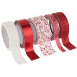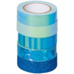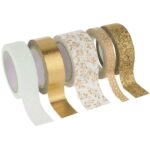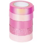 Tolle Deko Tapes „“Effekt Mix““ mit 5 Rollen in verschiedenen Breiten und Motiven, teilweise mit Glitter. Im Dispenser ist eine praktische Abreißkante angebracht. Es handelt sich hierbei um selbstklebende Bänder aus Papier. Bedruckt mit Ornamenten oder Punkten, Glänzend oder mit Glitter! Hier ist für jede Gelegenheit das passende Band vorhanden. Die Bänder sind ein origineller Blickfang mit wunderschönen Akzenten. Alle Bänder können hervorragend miteinander kombiniert werden. Einfach einzusetzen in der Dekoration von Geschenkkarten, Scrapbook-Projekten, Gestaltung von Geschenken und vielem mehr. So entsteht schnell ein ganz neuer Look, der durch Sticker, Metallanhänger und Streuteile ergänzt werden kann. Setinhalt: 2 Bänder 12 mm x 2,0 Meter 1 Band 18 mm x 6,5 Meter 1 Band 6 mm x 6,5 Meter 1 Band 12 mm x 6,5 Meter Anzahl Teile: 5 Selbstklebend Material: Papier
