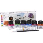 Das Javana Creativ-Set Seidenmalerei „“trend colors““ ist ideal als Einstiegsset in die Seidenmalerei. Set-Inhalt: 6 x 20 ml Orange, Pink, Bordeaux, Violett, Blau, Maigrün, 1 Tube Konturenfarbe mit Perlglanzeffekt in gold 20ml und 1 Pinsel. Das Set enthält 6 hochpigmentierte, brillante Seidenmalfarben, die nach der Bügelfixierung lichtecht und waschbeständig (auf links gewaschen) sind. Die Farben sind geeignet für Seide und helle Textilien: Baumwolle, Leinen, Leder und Textilien mit einem maximalen Kunstfaseranteil von 20%. Die beliebten Seidenmaltechniken: Konturen-, Salz-, Aquarell-, Airbrush- und Spraytechnik können mit diesen Farben angewendet werden. Die im Set enthaltene Konturenfarbe (Gutta) ist in der Seidenmalerei wichtig für die Abgrenzung der einzelnen Farbflächen oder für das Malen von effektvollen Konturen und Linien. Anzahl Teile: 8