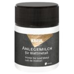 Diese Anlegemilch ist ein Spezialkleber auf Wasserbasis zum Anlegen von Blattmetallen oder Blattmetall-Flocken auf den verschiedensten Deko-Objekten für den Innenbereich. Für saugende und nicht saugende Untergründe geeignet. Tragen Sie die Anlegemilch mit einem Pinsel dünn auf die fettfreie und saubere Oberfläche auf. Nach ca. 20 Minuten ist die Oberfläche, je nach Untergrund, für 1 bis 24 Stunden aufnahmebereit. Legen Sie die Blattmetall-Flocken oder das Blattmetall mit Hilfe eines Pinsels oder Tuches sanft auf die Oberfläche und drücken dieses vorstichtig an. Nach dem Ablüften könne die Überreste mit einem Tuch oder Pinsel einfach entfernt werden. Füllmenge: 50 ml