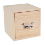 Eine vielseitige VBS Schubladenbox „“Würfel““ mit einer Größe von ca. 12 x 12 x 12 cm. Die Schublade hat einen Griff mit einem Einschub für die Beschriftung aus silberfarbenem Metall und eine Größe von ca. 10,5 x 11 x 10,5 cm. Das Innenmaß beträgt ca. 9,3 x 9,9 x 9 cm. Das Material der Box ist Sperrholz. Eine Seite der Schublade ist aus Balsaholz. Diese hochwertige Holzbox ist ein sehr vielseitiges Produkt. Hübsch mit Acrylfarben oder Chalky Color gestaltet, wird eine tolle Dekoration für alle Bereiche daraus. Mit einem Handlettering oder großen Ornamenten versehen, wird sie zum Trend! Ob für die Küche als Tee-Box oder als Aufbewahrungsort für Kleinigkeiten wie Schmuck und Schminksachen oder alles was Frau so braucht. Aber auch in der Männerwelt kommt diese Schubladenbox gut an! Die richtige Aufbewahrungsform für Kleinteile, wie Schrauben, Unterlegscheiben, Nägel und so weiter. Und das Beste, diese Box kann gestapelt und erweitert werden, so dass eine kleine Schrankwand entstehen kann, die nicht viel Platz benötigt. Zusammengeklebt und mit Aufhängern versehen, findet das kleine Regal auch einen Platz an der Wand. In Kombination mit anderen kleinen Regalen wird eine individuelle Staumöglichkeit daraus. Und das alles im eigenen Design. Hinweis: Die Farbe des Griffs kann abweichen. Anzahl Teile: 1 Länge: 12 cm Breite: 12 cm Höhe: 12 cm Material: Rohholz, Sperrholz