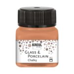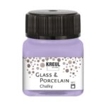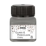 Den trendigen Chalky-Effekt gibt es nun auch auf hitzebeständigen und glatten Materialien. Mit den KREUL Glass & Porcelain „“Chalky““ Farben gestalten Sie Glas und Porzellan mit samtig matten Oberflächen und erzeugen so die verschiedensten Effekte. Die KREUL Glass & Porcelain „“Chalky““ Farbe besteht zu mindestens 60 % aus nachhaltigen Rohstoffen natürlichen Ursprungs. Die Farbe ist gut deckend und trocknet mit einer Kreide-Optik auf. Die Farben lassen sich mit dem KREUL Glass & Porcelain „“Farbverdünner““ beliebig verdünnen, somit werden individuelle Aquarell-Effekte erzielt. Die KREUL Glass & Porcelain „“Chalky““ lässt sich hervorragend mit den anderen Varianten der KREUL Glass & Porcelain Serie kombinieren. So lassen sich einzigartige Designs und verschiedene Akzente setzten. Wunderschöne und dauerhafte Dekorationen können so auf Glas, Porzellan, Keramik, Metall oder Terrakotta entstehen. Die Glas- und Porzellanmalfarbe wird mit einem beliebig starken Haarpinsel aufgetragen. Für Freihandzeichnungen empfiehlt sich ein Bleistift. Hier ist zu beachten, dass die Linien nicht übergemalt werden, damit sich diese nach dem Einbrennen einfach wieder entfernen lassen. Zum Übertragen von Motiven kann sehr gut ein Graphitpapier verwendet werden. Wichtig! Oberflächen, die mit Lebensmitteln in Berührung kommen, dürfen nicht mit der KREUL Glass & Porcelain Farbe bemalt werden, da diese nicht lebensmittelecht ist. Trinkränder oder Innenflächen von Gläsern und Tassen, Nutz- und Essbereiche, sowie Schnittflächen von Tellern sollten ausgespart bleiben. Nach einer Trocknungszeit von circa 4 Stunde kann die Bemalung bei circa 160 °C eingebrannt werden. Hierzu den Gegenstand in den kalten Backofen einstellen und dann erst den Backofen anstellen. Erst nach Erreichen der geforderten Temperatur beginnt die Einbrennzeit von 90 Minuten. Um den Einbrennvorgang korrekt abzuschließen muss der Gegenstand im Backofen auskühlen. Danach ist die Farbe wasserfest, spülmaschinenfest und speichelecht. Solange die Farbe nicht eingebrannt ist, kann die Bemalung mit Wasser einfach wieder abgenommen werden. So gestalten Sie temporäre Designs mit den verschiedensten Effekten auf vielen Kunststoffen, Spiegel und Acrylglas. Gestalten Sie Ihre eigene Glaskollektion oder dekorieren triste Schalen oder Vasen zu beeindruckenden Hinguckern im alltäglichen Umfeld. Füllmenge: 20 ml