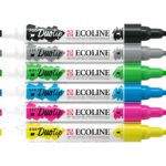 Farbe trifft auf Wasser. Mit den Solo Goya Aqua Paint Marker wird die Aquarellmalerei neu entdeckt und in die Parks, Städte und Café’s gebracht. Die handlichen Paint Marker sind mit einer elastischen Pinsel-Spitze versehen, die eine variable Strichstärke für die jeweiligen Bedürfnisse ermöglicht. Konzentrierte, transparente Farbstofftinte auf Wasserbasis wird durch das Faserstabsystem aufs Papier gebracht, welche nach Belieben auf entsprechenden Untergründen aquarellierbar ist. Das 6er-Set enthält die Farben: Zitron, Orange, Karmin, Kobaltblau, Gelbgrün und Schwarz. Ideal zum Skizzieren, Kolorieren, Zeichnen oder Handlettering im Wasserfarben-Stil. Fließenden und brillianten Farben mit harmonischen Übergängen – von feisten Linien bis zu großen strahlenden Farbflächen sind mit diesem innovativen Produkt möglich. Der Blender sorgt zusätzlich für perfekte Übergänge der einzelnen Linien und lässt die Kunstwerke so noch lebendiger erscheinen. Inhalt: 6 Stück