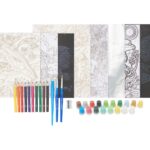 Das Art Adventure Mega-Set von Royal Langnickel für kleine und große Künstler. Es lassen sich tolle Malen nach Zahlen- und Kratzbilder mit den passenden Farben und Hilfsmitteln gestalten. Das Set enthält alle Materialien, um direkt mit dem kreativen Spaß zu beginnen. Die sieben Bilder mit unterschiedlichen Motiven sind für die verschiedensten Maltechniken ausgelegt. Außerdem sind 11 Acrylfarben für das klassische Malen nach Zahlen und 7 Farben für das Malen auf der Folie enthalten. In der Anleitung wird beschrieben wie die Farben anzuwenden sind. Das Besondere an diesem Set ist, dass bei den Malen nach Zahlen Bildern die Zahlen nicht direkt auf dem Malgrund aufgedruckt sind, sondern es eine separate Folie mit entsprechendem Motiv und den dazugehörigen Zahlen der Farben gibt. Das hat den großen Vorteil, dass bei hellen Farbtönen keine Zahlen darunter zu erkennen sind. Die Folie wird auf das Motiv gelegt und idealerweise an der oberen Kante befestigt. So kann nach entsprechender Trocknungszeit immer wieder die Folie über das Bild gelegt werden, um zu wissen, welche Farbe in welches Feld gehört. Natürlich kann die Folie mit den Zahlen auch neben das Bild gelegt werden, sodass man bequem mit der Vorlage vergleichen kann. Ein wunderbares Set zum Ausprobieren der verschiedenen Techniken. Auch perfekt als Geschenk. Anzahl Teile: 49 Material: Karton