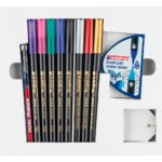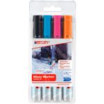 Mit den edding 95 Glass Marker-Sets können Sie immer wieder neue Beschriftungen oder Gestaltungen auf Glas, Glastafeln oder Whiteboars vornehmen. Die brillante und deckende Pigmenttinte der edding 95 ist auf Wasserbasis hergestellt und kann mit einem trockenen Tuch ganz leicht von Glas und glasähnlichen Oberflächen abgewischt werden. So können die Oberflächen immer wieder neu individuell genutzt werden. Die Marker sind gebrauchsfertig und brauchen nicht angepumpt werden. Der Marker liegt sehr gut in der Hand und dank der Rundspitze mit einer Strichstärke von 1,5-3 mm können sowohl feine Beschriftungen gemacht, aber auch Handletterings mit fetten Lettern gemalt werden. Ideal für Hobby oder Beruf. Strichstärke: 1.5 – 3 mm Lösungsmittelfrei Inhalt: 4 Stück