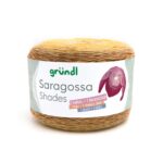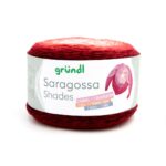 Die Wolle Gründl Saragossa Shades besitzt einen tollen Farbverlauf von Hell nach Dunkel innerhalb eines Farbtons und lässt sich super für Strick- und Häkelprojekte verarbeiten. Das Knäuel hat ein Gewicht von ca. 250 g und eine Lauflänge von ca. 1000 m. Die Besonderheit dieses 4-fädigen Garns ist, dass die Farbübergänge gespliced und nicht geknotet sind. Das angenehm zu tragende Garn aus 50 % Baumwolle und 50 % Polyacryl kann für trendige Tücher, Schals, Shirts, leichte Pullover, Strickjacken und mehr prima verwendet werden. Durch den einzigartigen, zarten Verlauf innerhalb einer Farbfamilie bekommt jedes Outfit das gewisse Etwas. Für einen Pullover in Größe 38 werden ca. 400 g benötigt. Aus einem Knäuel lässt sich ein schickes Dreieckstuch anfertigen. Hierfür befindet sich die deutsche Anleitung auf der Innenseite der Banderole, die französische und englische Anleitung ist über einen QR-Code zu finden. Gewicht: 250 g Lauflänge: 1000 m