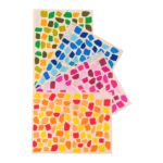 Die Sticker Geometrisch sind auf 8 Bogen verteilt und haben einen Größe von ca. 1,0 bis 1,8 cm. Diese ca. 864 Sticker haben die Farben Schwarz, Lila, Rot, Orange, Blau, Grün, Gelb und Pink. Ein Muss für jede Bastelkiste. Sie erhalten 1 Bogen je Farbe. Mit diesen vielfältigen Stickern lassen sich wundervolle Kreativarbeiten wie Scrapbook-Alben, Geschenkanhänger, Grußkarten und vieles mehr. Papiertüten oder Schachteln lassen sich im Nu zu einer liebevollen Geschenkverpackung verzieren. Das passende Schleifenband und ein kleiner Anhänger machen die Verpackung perfekt. Die Sticker sind super für das Basteln mit Kindern. Hier können sogar die Allerkleinsten richtig kreativ werden und Ihre ersten Kunstwerke alleine gestalten. Sticker kleben bringt Kinder eine große Freude. Motivgröße: 1 – 1.8 cm Selbstklebend Material: Papier