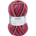 Gründl Hot Socks „“Madena““ wird als 100 g Knäuel mit einer Lauflänge von ca. 420 m geliefert. Zur Anfertigung eines Pullovers in Größe 38 wird ca. 500 g, für ein paar Socken bis Größe 46 ca. 100 g Hot Socks Madena Wolle benötigt. Es wird zum Stricken und Häkeln eine Nadel in der Stärke 2,5 – 3,0 mm empfohlen. Hot Socks Madena ist eine Sockenwolle für die ganze Familie. Das 4-fädige Garn mit einem interessanten Farbverlauf in Jacquard-Optik hat eine hohe Festigkeit, ist strapazierfähig, superwash und filzfrei. Auch für das Stricken von Pullovern, Jacken und Accessoires wie Mützen, Schals und Handschuhe ist diese Wolle bestens geeignet. Ob für sich selbst oder als Geschenk über ein paar selbst gestrickte Socken freut sich garantiert jeder. Gewicht: 100 g Lauflänge: 420 m