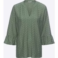 Diese Damen-Bluse von Laura Torelli Classic kombiniert stilvolles Design mit hohem Tragekomfort. Der Jacquard-Stoff und die 3/4 Ärmel mit Volant verleihen der Bluse einen eleganten Touch. Der Elasthan-Anteil sorgt für Flexibilität und eine angenehme Passform. Modernes Jacquard-Design 3/4-Ärmel mit Volant Mit Elastan für flexible Passform OEKO-TEX® Standard 100