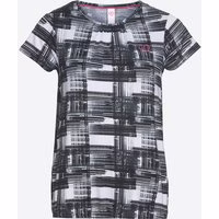 Dieses Damen-Funktions-T-Shirt besticht durch seine figurbetonte Form und bietet durchdachte Funktionalität im Alltag. Der Rundhalsausschnitt und das All-Over-Print-Design verleihen diesem T-Shirt einen modernen Look. Dank der schnelltrocknenden und atmungsaktiven Eigenschaften eignet es sich ideal für sportliche Aktivitäten. Der elastische Saum sorgt für zusätzlichen Komfort und der kleine Logo-Print setzt einen dezenten Akzent. Moderner Look mit All-Over-Print Rundhalsausschnitt für angenehmen Sitz Figurbetonte, schmeichelnde Passform Schnelltrocknend und atmungsaktiv Elastischer Saum für mehr Komfort Bügelfrei für einfache Pflege