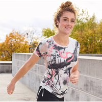 Dieses Damen-Funktions-T-Shirt mit Bindebändern besticht durch einen auffälligen Logo-Print und einen klassischen Rundhalsausschnitt. Die Bindebänder an den Seiten verleihen dem Funktions-T-Shirt eine modische Note, während die atmungsaktiven, schnelltrocknenden und bügelfreien Eigenschaften den Alltag besonders angenehm gestalten. Modisches Design mit großem Logo-Print Fransen-Details an den Seiten Klassischer Rundhalsausschnitt Atmungsaktiv für hohen Tragekomfort Schnelltrocknend und bügelfrei