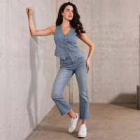 Diese Damen-Jeans im Kick-Flared-Schnitt von Laura Torelli Collection überzeugt mit ihrem modischen, blau weiß gestreiften Design und ausgefransten Beinabschlüssen. Die raffinierte Schnittführung verleiht Ihnen eine moderne Silhouette und sorgt für einen stilvollen Auftritt in jeder Situation. Genießen Sie Flexibilität beim Styling und ein angenehm leichtes Tragegefühl dank optimal abgestimmtem Materialmix. Modisches, blau weiß gestreiftes Design Kick-Flared-Schnitt für moderne Silhouette Unten mit leicht ausgefransten Beinabschlüssen Angenehm zu tragen im Alltag Geeignet für vielseitige Stylings