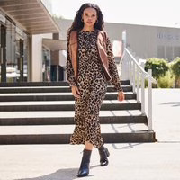 Dieses Kleid von Laura Torelli Collection überzeugt durch sein stilvolles Design mit charmanten Rüschen und Volants. Das Kleid mit Leo-Allover-Print bietet durch sein gewebtes Material einen eleganten und fließenden Look, der sich angenehm tragen lässt. Es ist die perfekte Wahl für besondere Anlässe oder einen stilvollen Auftritt im Alltag. Elegantes Design mit Rüschen und Volants Fließendes, gewebtes Material Perfekt für besondere Anlässe