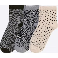 Diese Damen-Kurzschaft-Socken von bo_dy überzeugen mit ihren stilvollen Animalprints und bieten dank hohem Baumwollanteil optimalen Tragekomfort. Die Socken sind in einem praktischen 3er-Pack und nach OEKO-TEX® Standard 100 zertifiziert, was sie besonders hautfreundlich macht. Verschiedene Animalprints für stilvolles Design Bequemer Schnitt als Kurzschaft Hoher Baumwollanteil für Komfort Polyamid sorgt für Formbeständigkeit Elasthan für optimale Passform OEKO-TEX® Standard 100 zertifiziert