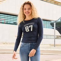 Dieses Damen-Langarmshirt von Laura Torelli Fashion begeistert durch seinen modischen Frontprint und bietet einen klassischen Look. Der Print verleiht dem Shirt das gewisse Etwas, während das Material mit Baumwolle und Elasthan für hohen Tragekomfort sorgt. Ein vielseitig einsetzbares Lieblingsstück für Ihre Garderobe. Modisches Design mit Frontprint Elastisches Material für bequemen Sitz
