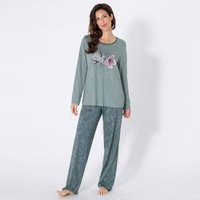 Der Damen-Schlafanzug von Bo_dy Classic kombiniert Komfort und Stil für entspannte Nächte. Das Obermaterial aus reiner Baumwolle sorgt für ein angenehmes Hautgefühl und bietet hohe Atmungsaktivität. Das florale Muster verleiht dem Design eine charmante Note, perfekt für gemütliche Stunden zu Hause. Langes Oberteil mit floralem Muster Bequeme, lange Ärmel Hautfreundliche, reine Baumwolle OEKO-TEX® Standard 100