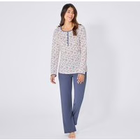 Der Damen-Schlafanzug von Bo_dy Classic überzeugt durch seinen fröhlichen Blumenprint am Oberteil und eine unifarbene Hose. Das Modell bietet durch reine Baumwolle ein angenehmes Tragegefühl und setzt auf klassischen Rundhalsausschnitt mit Knopfleiste und Schmuckkante für extra Komfort. Fröhlicher bunter Blumenprint am Oberteil Klassischer Schnitt mit langer Hose Rundhalsausschnitt mit Knopfleiste Hals- und Armausschnitt mit Schmuckkante Obermaterial aus reiner Baumwolle