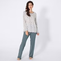 Dieser Damen-Schlafanzug von bo_dy classic bietet Ihnen mit seinem langen Design optimalen Tragekomfort für erholsame Nächte. Der Schlafanzug besteht aus reiner Baumwolle und verspricht ein angenehmes Hautgefühl. Optimal für entspannte Nächte und gemütliche Stunden daheim. Elegantes Design mit langer Passform Reine Baumwolle für höchsten Komfort Langarm-Shirt in attraktivem Muster Unifarbene Hose mit elastischem Bund