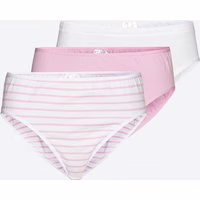 Angenehmer Damen-Slip von Body Besonders hautsympathisch dank hohem Baumwoll-Anteil Großartiges Tragegefühl Perfekter Sitz dank Elasthan Profitieren Sie vom günstigen 3er-Pack 2 Slips einfarbig, der andere gestreift Ziehen Sie sich ein gutes Gefühl an Hautsympathisches Basic
