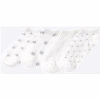 Die Damen-Sneaker-Socken von bo_dy im praktischen 4er-Pack bieten ein trendiges Tupfendesign und sind somit ein modisches Accessoire für Ihren täglichen Look. Der hohe Baumwollanteil sorgt für angenehmen Tragekomfort. OEKO-TEX® Standard 100 zertifiziert, sind sie besonders hautfreundlich. Trendiges Tupfendesign OEKO-TEX® Standard 100 Hoher Baumwollanteil Praktischer 4er-Pack