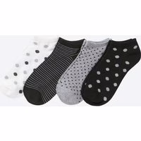 Die Damen-Sneaker-Socken von bo_dy im praktischen 4er-Pack verbinden modische Musterung mit Glitzereffekten für einen stilvollen Auftritt. Der hohe Baumwollanteil und das weiche Gefühl sorgen für angenehmen Tragekomfort, während die Zertifizierung nach OEKO-TEX® Standard 100 Hautfreundlichkeit garantiert. Modische Glitzereffekte für stilvollen Look Hoher Baumwollanteil für Tragekomfort OEKO-TEX® Standard 100 zertifiziert