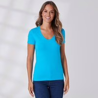 Damen-T-Shirt von Laura Torelli Collection Tolles Basic für den Alltag Mit hohem Baumwollanteil Mit Elasthan für eine angenehme Passform Mit V-Ausschnitt Kurzarm In 4 verschiedenen Farben erhältlich