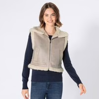 Diese Damen-Weste wird von Laura Torelli Fashion präsentiert und beeindruckt mit ihrer modernen Veloursleder-Optik. Dank des stilvollen Fake-Fell-Designs erhalten Sie ein vielseitiges Kleidungsstück, das ideal für kühle Tage ist. Diese modische Ergänzung Ihrer Garderobe bietet nicht nur optische Raffinesse, sondern auch einen hohen Komfort. Perfekt für einen modernen, eleganten Look bei Outdoor-Aktivitäten. Moderner Veloursleder-Look Stilvolles Fake-Fell-Design Outdoor-tauglich und vielseitig einsetzbar