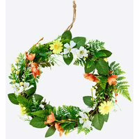 Dieser Dekokranz von Home aus Rattan mit detailreichen Kunst-Blumen ist eine dekorative Bereicherung für Ihre Wohnräume. Mit einem Durchmesser von ca. Ø 25 cm eignet er sich zum Hängen oder Legen und verleiht jedem Raum eine freundliche, frische Note. Dekokranz aus Rattan Mit Kunst-Blumen Geeignet zum Hängen oder Legen Größe ca. Ø 25 cm