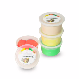 <p>Die Kombi beinhaltet vier Dosen á 453 g Handknete. Du bekommst von den vier Widerständen extra leicht, leicht, mittel und stark je ein Pöttchen. Die Knete bildet eine tolle Alternative zum Pressball und ist ideal zur Rehabilitation und zum Erhalt der Beweglichkeit von Fingern und Händen. <br /><br />Material:</p><ul><li>Angenehm im Griff, schmiert und färbt nicht und wird nicht hart.</li><li>Die Knete ist frei von Hyperallergenen, Latex und Fette, damit <strong>Allergiker geeignet</strong>.</li><li>Die Handknete enthält <strong>keine tierischen Produkte</strong>, sie ist vom Hersteller als <strong>vegan</strong> bestätigt.</li><li>Inhalt je Dose <strong>453g</strong></li></ul><p><br />Stärke – Farbe:</p><ul><li>Extra leicht – elfenbein </li><li>Leicht – gelb</li><li>Mittel – rot</li><li>Stark – grün</li></ul>