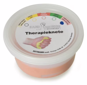 Die Handknete gibt es in fünf verschiedenen Stärken, die abhängig vom Trainingsstand bzw. Therapieverlauf ausgewählt werden. Bei rheumatischen Beschwerden unterstützt die Handknete den Erhalt der Finger- und Handbeweglichkeit. Durch das Kneten werden Handmuskeln gekräftigt, die Dehnung verbessert und die Finger geübt. Als reiner Handtrainer wird die Handknete auch für den Kraftsport eingesetzt. Sie bildet eine tolle Alternative zum Pressball und ist ideal zur Rehabilitation und zum Erhalt der Beweglichkeit von Fingern und Händen. Material:· Angenehm im Griff, schmiert und färbt nicht und wird nicht hart.· Die Knete ist frei von Hyperallergenen, Latex und Fette, damit Allergiker geeignet.· Die Handknete enthält keine tierischen Produkte, sie ist vom Hersteller als vegan bestätigt.· Inhalt je Dose 85g Stärke – Farbe:· Extraleicht – elfenbein· …