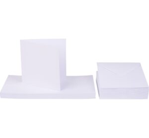 Doppelkarten mit Umschlägen „“Weiß““ mit einem quadratischem Format von 12,5 x 12,5 cm im praktischen Vorteilspack. Enthalten sind 50 qualitativ hochwertige Doppelkarten mit einem Papiergewicht von 250 g/m² und 50 passende Umschläge. Die Karten sind ideal für die kreative Kartengestaltung mit Stickern, Farben, Motivpapier, Bändern, Stiften, Farben und vielem mehr geeignet. Gestalten Sie Glückwunsch-, Genesungs-, Gruß- oder Einladungskarten nach Ihren eigenen Wünschen und zu den verschiedensten Anlässen. Ihrer Kreativität und auch den verwendeten Materialien sind hier keine Grenzen gesetzt. Anzahl Teile: 100 Ligninfrei Säurefrei Grammatur: 250 g/m² Inhalt: 50 Stück Länge: 12.5 cm Breite: 12.5 cm Material: Papier