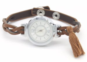 Elegante Damen Armbanduhr mit kleinem rundem Metallgehäuse, geflochtenem Kunstlederarmband & Quasten-Deko verstellbar mit Druckknopf-Verschluss September 7, 2025 Sexy Damen-Uhr Preis: 14.9 EUR Zur Produktbeschreibung