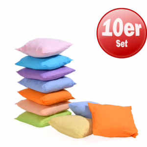 <p>Inhalt: 10 Stück, farbig sortiert.<br />Zum Schmusen, Kuscheln und für ausgelassene Kissenschlachten.<br /><br />Kein Spielzeug. Dekorationsartikel. Herstellernachweis bitte aufbewahren.<br /><br />Material: Bezug Baumwolle, Füllung Polyester<br />Maße: 26 x 26 cm<br />Gewicht: ca. 0.1 kg<br />Waschbar bei 30 Grad</p>