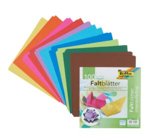 Buntes Faltpapier im Format 20 x 20 cm. Das Faltpapier hat ein Gewicht von 70 g/m² und ist in 10 kräftigen Farben Sortiert. Die Packung enthält 100 Blatt für vielerlei Faltprojekte. Gestalten Sie kleine Figuren, Geschenkverpackungen oder Fensterdekorationen. Das Faltpapier ist für viele Falttechniken wie zum Beispiel Origami bestens geeignet. Grammatur: 70 g/m² Inhalt: 100 Stück Länge: 20 cm Breite: 20 cm Material: Papier