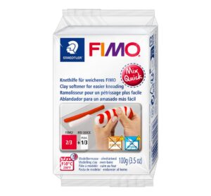 Mit der FIMO Mix Quick Knethilfe wird das Modellieren mit festerem FIMO zum Kinderspiel! Die extra weiche Modelliermasse lässt sich spielend leicht in das feste FIMO einkneten und verkürzt somit den Knetvorgang. Hol dir jetzt den 100 g Block und erleichtere dir das Basteln und Modellieren! Die FIMO Mix Quick Knethilfe ist ein unverzichtbares Tool für alle Bastelfans und Künstlerinnen. Mit ihrer Hilfe kannst du festeres FIMO viel schneller und einfacher zu einer weichen und formbaren Masse kneten. Dadurch sparst du Zeit und Kraft und kannst dich voll und ganz auf deine kreativen Ideen konzentrieren. Die Vorteile der FIMO Mix Quick Knethilfe liegen auf der Hand: Sie verkürzt den Knetvorgang, erleichtert das Modellieren und sorgt für eine gleichmäßige Konsistenz der Modelliermasse. Dadurch gelingen dir auch filigrane Details und feine Strukturen mühelos. Die Knethilfe ist zudem besonders weich und angenehm in der Handhabung, was das Basteln noch entspannter macht. Die Anwendung der FIMO Mix Quick Knethilfe ist ganz einfach: Nimm eine kleine Menge der extra weichen Modelliermasse und knete sie in das feste FIMO ein. Wiederhole diesen Vorgang, bis das FIMO weich und formbar ist. Anschließend kannst du wie gewohnt mit dem Modellieren beginnen und deine kreativen Ideen umsetzen. Hol dir jetzt die FIMO Mix Quick Knethilfe und starte Mühelos in deine Modellierprojekte. Gewicht: 100 g Länge: 55 mm Breite: 18 mm Höhe: 55 mm