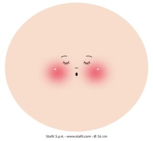 Das Gesicht auf Trikotstoff „“Marty““ ist ideal, um ein kreatives Gesicht auf den verschiedensten Oberflächen zu gestalten. Besonders für gewölbte Oberflächen geeignet. Es sind 3 Gesichter auf elastischem Stoff aus 100 % Baumwolle enthalten, die sich mit einer Schere leicht zuschneiden lassen. Süße Gesichter auf Holz-, Acryl- oder Styroporkugeln können mit diesen Stoffzuschnitten einfach umgesetzt werden. Fest um die gewählte Kugel gelegt und mit entsprechendem Fixiermaterial wie Reißzwecken, Heißkleber oder ähnlichem befestigt sind im Handumdrehen niedliche Gesichter für kleine Engel und Puppen gebastelt. Zusätzlich mit Feenhaar, Tüll oder Mützen dekoriert entstehen tolle Köpfe. Die Gesichter sind in verschiedenen Größen erhältlich und für folgende Ø geeignet: Ø 7,5 cm eignet sich für Kugeln mit einem Ø von ca. 4 cm Ø 13 cm eignet sich für Kugeln mit einem Ø von ca. 6 cm Ø 16 cm eignet sich für Kugeln mit einem Ø von ca. 7 – 8 cm Inhalt: 3 Stück Durchmesser (außen): 16 cm
