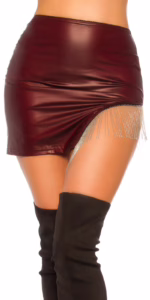 Glossy Wet Look Minirock mit Cutout und Deko Fransen September 7, 2025 Sexy Party-Minirock in Wet-Optik Preis: 20.175 EUR Zur Produktbeschreibung