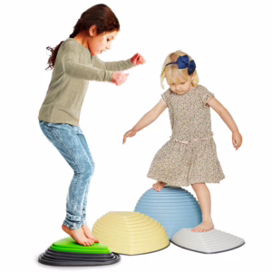 Über Stock und über Stein… hier bekommt deine Parcourstrecke eine herausfordernde Dynamik. Mit der Kombination von den drei unterschiedlich hohen Gonge Hügelkuppen NORDIC, die es zu erklettern gilt und dem federnden Flussstein lässt sich spielerisch Motorik, Balance und Koordination trainieren. Ob in Reihe gelegt oder sternförmig angeordnet, hier ergeben sich immer wieder neue Strecken und Wege, die ein abwechslungsreiches Balanciervergnügen bieten. Neben Kindergarten, Kita und zuhause werden die Balnacierelemente auch gerne im Reha- und Therapiebereich eingesetzt.Drei Hügelkuppen in verschiedenen Höhen, die Kinder dazu anregen, von Gipfel zu Gipfel zu springen oder zu steigen und die Balance zu halten. Hügelkuppen entwickeln die Fähigkeit der Kinder, Entfernungen einzuschätzen, machen sie mit Höhen vertraut und fördern den Gleichgewichtssinn, sowie die Motorik. Jede Hügelkuppe ist mit…