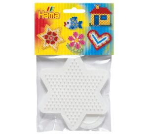 Schöner Hama Stiftplatten-Mix mit den Motiven: Herz 8,8 cm x 7,5 cm und Stern 10 cm x 9 cm. Dieser Stiftplatten-Mix mit 2 Motiven sollte in keinem Hama-Perlen Sortiment fehlen. Eine schöne Anfangsausstattung um dieses Hobby für die Kinder interessant zu machen. Beim Legen der Hama-Perlen wird die Kreativität der Kinder gefördert. Die Hama Perlen werden in den gewünschen Farben und Mustern auf die Platte gesteckt und mit einem Bügeleisen verschmolzen. Ein prima Bastelspaß für Kinder! Inhalt: 2 Stück Material: Kunststoff