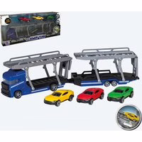 Dieser Autotransporter von Happy People ist das ideale Spielzeug für kleine Autofans. Ausgestattet mit drei Die-Cast-Autos und Rädern mit Freilauf, bietet er stundenlangen Spielspaß. Autotransporter mit drei Die-Cast-Autos Räder mit Freilauf